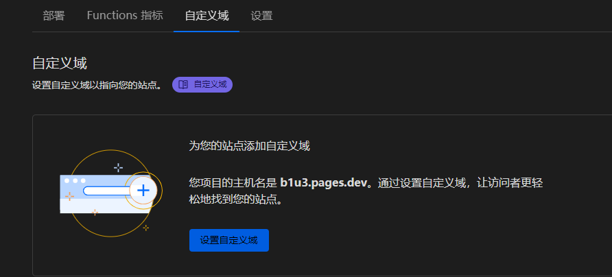 构建完成后,我们可以为项目指定自己的域名。此处点击“设置自定义域”。