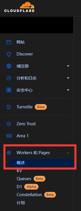 前往 Cloudflare 登录你的账号(如果没有,请直接注册),在左侧边栏找到 Workers 和 Pages