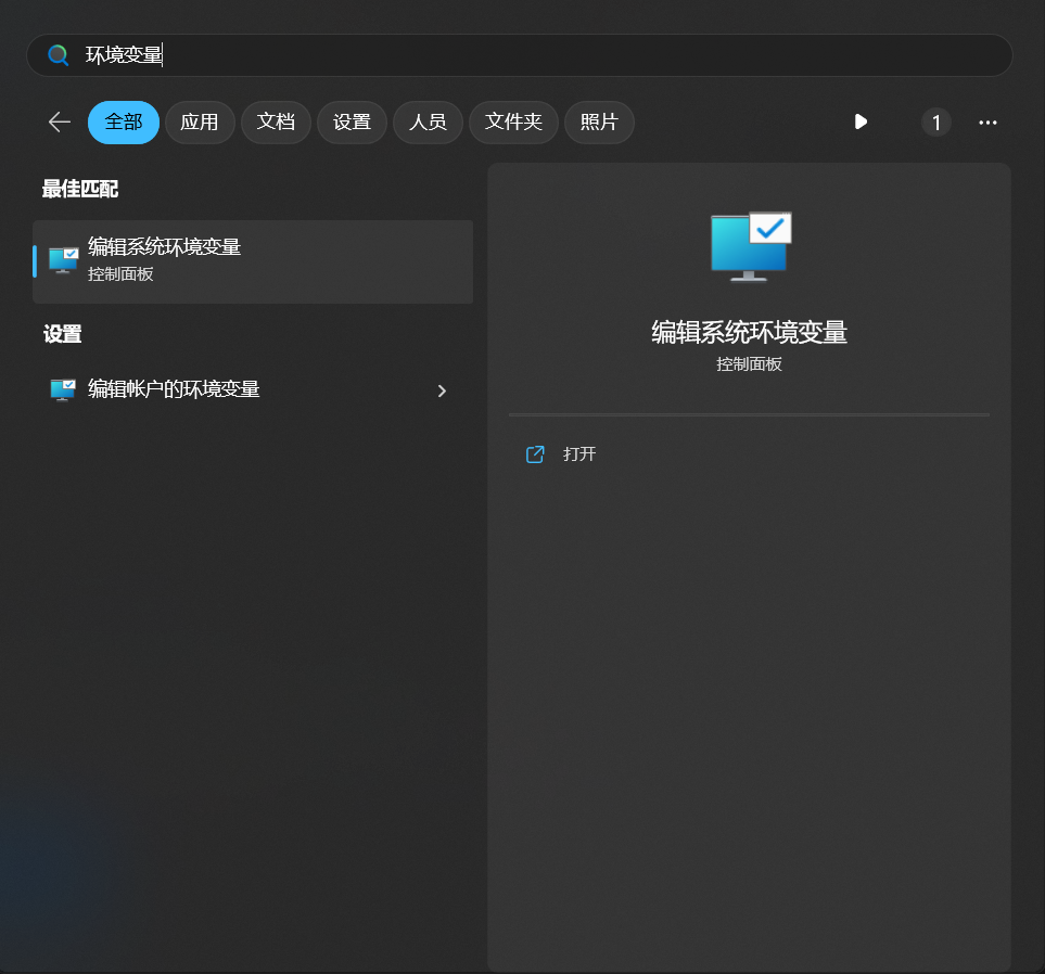 请按 Win 键,调出开始菜单,然后搜索环境变量。